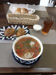 Уютная атмосфера вежливый персонал приемлемые цены. Брал жареные манты очень вкусно советую и похлёбку с овощами пельменями и кусочками баранины тоже вкуснятина. Так что буду ещё мимо проезжать обязательно зайду и вам советую