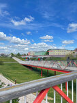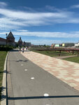 Вид отличный с набережной. Очень уютно, чистота, много места, пространства, воздуха, КРАСИВО и нарядно. Много самокатов в прокат. Отличные дорожки для пешеходов, отдельные для велосипедов и самокатов. Гулять было очень приятно, качели под прозрачной крышей. Туалет есть. Кремль рядом. Можно мороженое купить.
