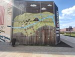 Набережная 2018 года, но уже все перила ржавые, доски отваливаются, грустно, напротив промзоны, заводы, портят вид. Местно приятное, современное, бесплатные туалеты, много лавочек около реки.