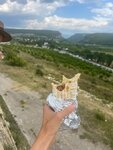 С говядиной, это лучшая шаверма в Крыму! Делают без лука и можно попросить без чесночного соуса, все равно получается сочной. А я пробовал много, от Питера до Крыма. Ну, разве что на Литейном, угол с Невским тоже не плохая была) Стесть можно, тут же в Бахчисарае, но приятнее доехать до видовой площадки Бельбекской долины и сесть на фоне крокодила)