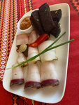 Ассорти из соленого, запеченного и копченого сала. Подается с гренками из бородинского хлеба, горчицей и хреном