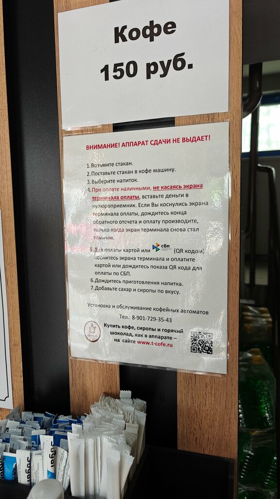 Не советую пользоваться услугами данной вендинг организации (Кофе с собой). При любой спорной ситуации умывают руки и уходят в тень. Аппарат по неизвестной причине списание произвёл, но продукт не выдал. Переговоры с представителем ни к чему ни привели-посылает разбираться со своим банком, не смотря на неприятную ситуацию, возникшую на их стороне. Странный подход к ведению дел, обнуляющий репутацию за стоимость стакана кофе.