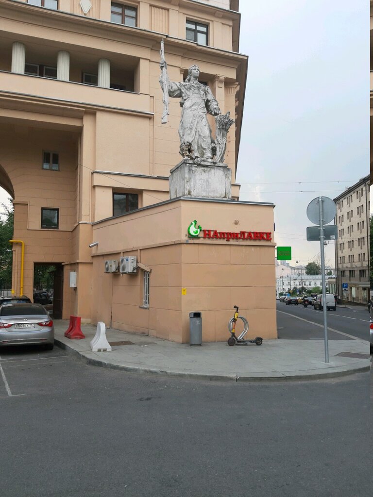 Необычный дом и скульптуры, привлекают внимание. Рабочий с книгой и отбойным молотком, колхозница со снопом и почему-то с винтовкой, воинственная советская женщина) Печально видеть, что скульптуры в плохом состоянии. Властям было бы неплохо обратить на них внимание и провести реставрацию, все-таки это центр, туристы ходят, смотрят.