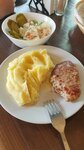Прекрасное место, чуть вдали от дороги, удобный заезд, очень чистый туалет и сам зал, хорошее обслуживание, заезжали пообедать, ожидание не долгое, вкусно очень готовят, порции большие, всё понравилось, пельмени домашние были курица-свинина хороши, суп лапша порция супер, брали ещё компот холодный с сухофруктами и солянка прекрасная насыщенная и мясная, очень всё понравилось 👍 Рекомендую от души!!!