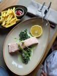 Красивое место, приятная атмосфера, самое то, после трудовых будней. Очень вкусные котлеты из семги и хачипури🤤Удобное расположение, нет проблем с парковкой. На втором этаже праздновали свадьбу, ребят не было слышно и видно) в целом место хорошее, спасибо