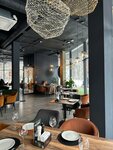 Место очень атмосферное,просторное, эстетичное, особенно приятно сидеть около панорамных окон, думаю,что летом ещё уютнее будет. Были в понедельник, оказалось,что в этот день были 50% скидки на меню кроме детского и постного, если не ошибаюсь. Заказали уху,пиццу,чай и десерт три шоколада. Уха оказалась немного пересоленой и жидковатой,за полную стоимость было бы очень досадно получить такую порцию, в целом вкусно. Десерт красиво был оформлен,но он больше похож на массовые десерты, чем на классический вариант и бисквит оказался сильно прилипшим ко дню стаканчика,в котором был сделан, вкусно,но больше бы не заказала. Чай брали малиновый, отличный,ароматный, насыщенный,понравился. Особенно понравилось,что в туалетах есть для деток подставки, чтобы они доставали до раковины. Так же есть комната мать и дитя с пеленальным столиком, детским мылом, одноразовыми пеленками, что тоже очень удобно. Единственное,не видела,есть игровая комната или нет и если есть платная или бесплатная,это стоит уточнять заранее,если собираетесь с детками,которые любят игровые. Персонал вежливый,приветливый, обслуживание понравилось.