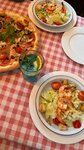 Давно к вам собирались, начитавшись хвалебных отзывов. Заказали салат с ростбифом, салат Капри и пиццу с вялеными томатами. В итоге пицца как пицца (без восторга), салат с ростбифом -вкусный, а вот салат Капри- полное разочарование. Искусство повара, на мой взгляд, заключается в том, чтобы уметь из простых продуктов приготовить кулинарный шедевр. Но в данном случае набор вкусных по отдельности продуктов (креветки, огурцы, помидоры, яйцо, салат) умудрились замешать в совершенно невнятный салат...Сервис тоже был так себе, поэтому только три звезды.