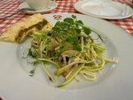 Неплохо, но могли бы получше (камешек в огород повара!) Были вчетвером, столик бронировали заранее, по меню: пицца 4 сыра, тальятта и овощи на пару оказались хороши, свинные медальоны сухие и жесткие, лазанья с рыбой - недоготовлена, в середине попадались холодные листы теста. Десерты тоже оставили двоякое впечатление: миндальный тортик вкусный, а вот рикота с грушей как-то не произвела должного впечатления. Подача долгая, основные блюда ждали полчаса, причем сначала принесли двоим, а только минут через 10, оставшимся. Сначала подали кофе, потом принесли десерты... Официанты хорошие, приветливые, пересадили за столик получше (в уголке, с диванчиками), вовремя сориентировали по составу детских блюд, доброжелательная атмосфера.