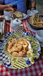 Начнём с минусов: когда мы пришли, захотели присесть за стол у окна, который, видимо, недавно освободился, но тарелки ещё не успели убрать. Официант быстро схватил грязные тарелки, освободил стол и на этом всё... крошки от предыдущих гостей он оставил нам. Скатерти в ресторане тканевые, не гладкие, и чтобы стряхнуть крошки, по моему мнению, нужно вытряхивать скатерть, чтобы уже точно под руки ничего не попало. Ну ладно...смахнула я эти крошки как могла салфеткой, сделала вид, что всё чисто. Но осадочек остался. Еда, пожалуй, вкусная, выбор блюд большой, можно в меню повыбирать всё на любое настроение. Жареный сыр 🧀 - вкусный, нежный. Общее впечатление крошки на столе подпортили, но еда вкусная.
