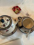 Была идея вечером перед сном поужинать в приятном месте. На выходе с Патриарших прудов применила здешнее местечко - привлёк уютный интерьер. К сожалению, на этом все плюсы для меня кончились. Оливье с колбасой принесли целый бочонок, и качество как для сильно оголодавших, такой салат в банальной Скалке сегодня вкуснее делают. Майонез не сильно люблю и не ем, если не собственного производства. Тут по вкусу как из магазина самый дешёвый. Я жмот и обычно доедаю до крошки, но тут была голодна и то не захотелось этого Оливье. Но больше всего расстроил размер т.н. пирожков - вместо хотя бы полуразмерных пирожков какие-то размером с сушку пятнышки с начинкой. Спасибо, конечно, что следите за фигурой гостей, но когда берёшь из меню пирожок - ожидаешь нормальный пирожок к чаю, чтобы был полноценный перекус, а не высокую кухню на один укус. Чай с бергамотом тоже как вода, ненасыщенный и непримечательный. Короче, не получилось качество ужина таким же, как на фото в Инстаграм для друзей на вид)) Я не люблю излишний китч, ценю хороший вкус и добросовестную гастрономию.