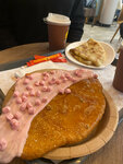 Зашла взять только кофе, но не удержалась и взяла круассан с рыбкой, уж очень аппетитно он лежал на витрине😄 было вкусно, единственное, не хватило сочности в нем, немного был суховат) но в целом, все понравилось 👍 сотрудники приветливые