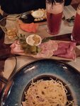 Вчера посетили с парнем данное заведение. Немного запоздали, но нас посадили за столик на втором этаже. Официант сразу принес нам меню, подходил потом еще где-то пару раз с вопросом выбрали ли что-то. Посоветовал взять классический апероль, коктейль Терпкая вишня и Секс от автора. Мой парень еще взял виски. Из блюд заказывали пасту карбонару, пельмешки от Мартина, мясная и сырная тарелка. Блюда качественные, порции не мизерные, а довольно достаточные, наелись с великим удовольствием. Алкогольные коктейли на настойках - потрясающие! Очень вкусные, ощущение, что алкоголь практически отсутствует, но при этом чувство непринуждённости и легкости после употребления наступило. Порции напитков также были приличными. Официанту огромная благодарность за быстроту подачи и рекомендации по коктейлям. Единственное, что еще отмечу - липкий пол, слегка заляпанные меню и в туалете не было бумаги. Прошу на это обратить внимание, а все остальное было потрясающим. Спасибо за приятно проведенное время, ушли с хорошим настроением, проведя у вас праздник по случаю полгода отношений с парнем.
