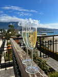 Были на 4 этаже с видом на море, прекрасный вид, все рядом, бассейн с настоящей морской водой и только здесь можно увидеть ретро бариста с идеальной школой и опытом! Шампанское брют в качестве комплемента в ведре со льдом было отличным