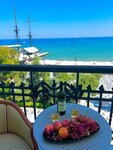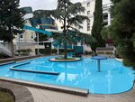 Это самый дорогой из наших отелей и в нем мы жили дольше всего (4 ночи). Про него мне есть что сказать 😂 У отеля 4 звезды, но это, видимо, только заслуга персонала. Начну с того, что по ошибке бронирования через Яндекс. Путешествия, мы забронировали два одноместных номера а не один двухместный. Решили на месте разобраться и попробовать переселиться. Нам сказали, что стандартов свободных нет, можем предложить только семейный, но с доплатой. Мы согласились. И одна ночь в этом отеле вышла нам в 33 тысячи (за эти деньги мы могли отдыхать в Мрии). Номер нам дали с двумя раздельными кроватями, по нашей просьбе их сдвинули и тем самым закрыли комфортный доступ к розеткам. Детская кроватка прошла афганскую войну, судя по виду. У неё не поднимался борт и Егор просто переваливался к нам и обратно. Места в номере для неё особо тоже не было, только под кондиционером, который дул прямо на ребёнка. Крошечная ванна, с плесенью и разбухшей дверью от воды. Полотенцесушителя в номере не было как и балкона, соответственно посушить вещи, купальники было негде. Чтобы добраться до нашего номера, после лифта нам нужно было ещё преодолеть небольшую лестницу, поэтому куда то ходили мы только все вместе, коляску с ребенком я никак не утащу одна. У нас был Включен завтрак, полного пансиона в отеле нет, что очень печально. Кормили вкусно, в качестве комплимента давали бокал шампанского. В отеле был спа, там нам понравилось. Уличный бассейн с горкой, но нет детского «лягушатника» - это минус. Свой пляж с лежаками и зонтиками, прям супер отлично. Есть парковка, что огромный плюс. Расположение у отеля тоже прекрасное, на набережной в самом сердце, любые заведения в шаговой доступности. Так же магазин и аптека. В целом, отель мне понравился, я бы ещё вернулась. Но вот цена, конечно, явно не за этот ремонт. Нужно привнсти в порядок и обновить не только мебель