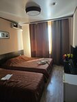 Современная придорожная гостиница, вежливый персонал, хорошая кухня, причём практически круглосуточная. Взяли номер на 3х за 4200, чисто, посторонних запахов нет. Да, сплитсистема, холодильник в номере (это огромный плюс). Чайника в номере нет и воды тоже, даже в коридоре. Комната маленькая, троим очень трудно разойтись. Отдельно про душ: да, все одноразовые мыльные принадлежности есть ( шампунь, гель, мыло, зубные щетки), но не куда положить, душ только сверху и нет лейки (что для девочек очень необходимо). Поэтому и четвёрка. Да, полотенца по два на каждого и даже есть для ног. Но, блин, плохо простираны и с запахом🤷‍♀️ А так в целом, нормально. Мы выспались и едем дальше!