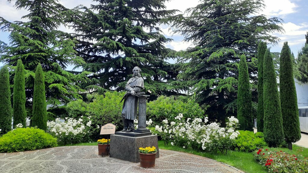 В Крыму у входа в санаторий "Айвазовское" с одноименным парком вокруг стоит памятник великому жудожнику с мировым именем - Ивану Константиновичу Айвазовскому, который хотя и жил в Феодосии, сюда частенько приезжал на пленэр.