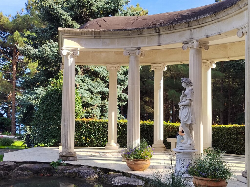 Путешествуя по Крыму рекомендую обязательно посетить Парк Айвазовского, находящийся в Партените, на территории одноименного санатория. Вход на территорию платный 900руб, но есть льготные билеты для детей и пенсионеров. Само место очень атмосферное, архитектурные композиции в античном стиле, беседки, ротонды, скульптуры - великолепные локации для фотографий. Можно прогуляться самостоятельно, но есть и экскурсии на электрокаре, так как территория достаточно большая. Для любителей восточной культуры в парке есть японский сад, попасть туда можно за дополнительную плату в 1000р, но к сожалению время посещения ограничено P. s. Я 🙋 очень, очень рекомендую посетить этот парк, он хорош в любое время года, вы получите массу эстетического удовольствия....