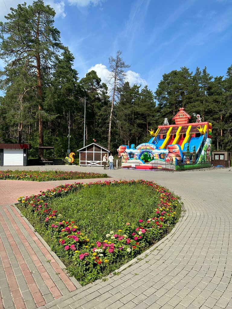 Очень хороший парк, есть аппараты для кормления лебедя, уточек и голубей с рыбками, также есть аттракционы, лавочки с видом на озеро , площадка для собак специальная, а также спорт площадка , видно сделано с заботой, всегда чистый парк.