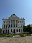 Раньше, давным давно, во времена Российской империи, после войны 1812 года — в этом здании находилась гимназия для мальчиков. Затем в здании решили разместить музей, который назвали Румянцевским и относился он к Московскому университету. А одним из первых директоров этого музея был почти два десятка лет профессор Иван Владимирович Цветаев — отец Марины Цветаевой , талантливой поэтессы Серебряного века. А потом директором музея стал некто Виноградов, ученик Цветаева. И Виноградов раздерибанил Румянцевский музей — из огромной музейной библиотеки он организовал Библиотеку им. Ленина, а художественные произведения (картины, статуи и проч.) отправил в другие музеи. Место историческое, знаменательное. Очень красиво