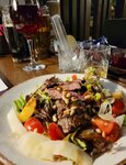 Всё неплохо,но вот из-за несоответствия фотографиям снижаю рейтинг. Частенько посещаем данное заведение. Персонал, просто, великолепный. Извините, салат с бэби картофелем и на фотографиях на сайте руккола,а никак не салат. Очень вкусные стрипсы, смаженный сыр,борщ и допы к нему просто велликолепны. Что касается самого заведения, то всегда заказываем гуляш в хлебе-очень вкусно! Настойки совсем спиртовые. Пиво хорошее.