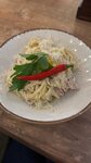 Расстроены этим местом, раньше будто приятнее было. Макароны на сливках с кусками сала, которые украшены петрушкой с перцем - это вариант столовской карбонары, очень невкусно, а заветренный чизкейк, который шел в подарок имениннику украсил вечер… В целом подача оставляет желать лучшего. Официантка постоянно воротит нос, недовольная, вилку не принесла, просили другую девушку. Тот момент, когда дома готовишь вкуснее и красивее, больше не придем сюда ☺️