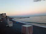 Пляж открыт для всех желающих, из-за этого отдыхающим в частных отелях, как мы, ничего не предоставлялось. Шезлонги и зонтики платно. Людей много. С ручными маленькими собаками не пускают, об этом есть информация на стендах пляжа. Также есть информация о запрете курения и распития спиртных напитков, но на это спасатели почему-то закрывают глаза и пепел курильщиков летит прямо на отдыхающих, пиво распивают прямо перед детьми. Но ведь главное: не пустить с собакой, которая с рук не слезает и в море не купается! Раздевалки есть. А вот душ, чтобы смыть морскую воду только один на не несколько пляжных зон. Соответственно бегать с одной зоны, например в конце набережной, в начало никто не будет. Расположение туалета аналогично, один за 30 рублей, да и тот не работал. Очень многолюдно, шумно, что для городского пляжа было бы абсолютно нормально, но не для пляжа, которые рекламируют частные отели, которых на этой улице ну очень много.