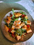 На вывеске уже просто «Мельник». Интерьер обычного кафе, двор большой, удобная парковка внутри двора. Важно вовремя свернуть с трассы М7 на улицу. Были втроем. Как по мне, заведение слегка перехвалили. Ценник на блюда задран, как в Москве. Видимо, обусловлено расположением на трассе М7. Моя оценка 4-4,5 из пяти. Что не понравилось. Как ни странно, ни мне, ни мужу не зашли салаты. Я брала с хрустящими баклажанами и рукколой. Показалось, что слишком много травы (рукколы и др), недостаточно баклажан и кедровых орехов. Муж не впечатлился соусом у салата цезарь с креветками. Порции средние. Что впечатлило. Готовят достаточно быстро. Муж остался очень доволен мягким мясом шашлыка, я с удовольствием продегустировала телятину с брокколи. Так что вторым блюдам респект! Мелкие детали также потянули мою руку поставить 4 звезды, а именно: заказала свежевыжатый апельсиновый сок, по вкусу он явно был смешан с яблочным. Сложилось впечатление, что сок выжали на той же соковыжималке, на которой перед этим сделали яблочный сок. Ну, и подача блюд немножко подкачала: дочери принесли сначала картофель (хотя это отдельное блюдо, но рассматривалось как гарнир), а стейк из курицы (кстати, был отменный!) сильно погодя, когда мы с мужем закончили с горячим. Так что по совокупности ставлю твердую 4/5. На троих (каждому по салату, горячему и соку) вышло 5,5 тыс р. Не мало.