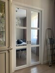 Заказывала двери в студию. Одна межкомнатная дверь и одна дверь в ванную комнату. В салоне помогли определиться с моделью, подобрали фурнитуру. В итоге уговорили меня на более дорогой, но и красивый вариант с зеркалами поперек двери на уровне ручки. Двери отлично вписались в интерьер. Установка и подрезка по месту заняла почти целый день. Единственный косяк - заказала одну дверь с заверткой, а вторую - без. Но на фабрике сделали вырезы в зеркалах и в том, и в другом полотне. Пришлось искать, где купить такую завертку, как на двери в ванную, а их уже перестали поставлять... Но в итоге нашлась. Подробнее на Отзовик: https://otzovik.com/review_13436203.html