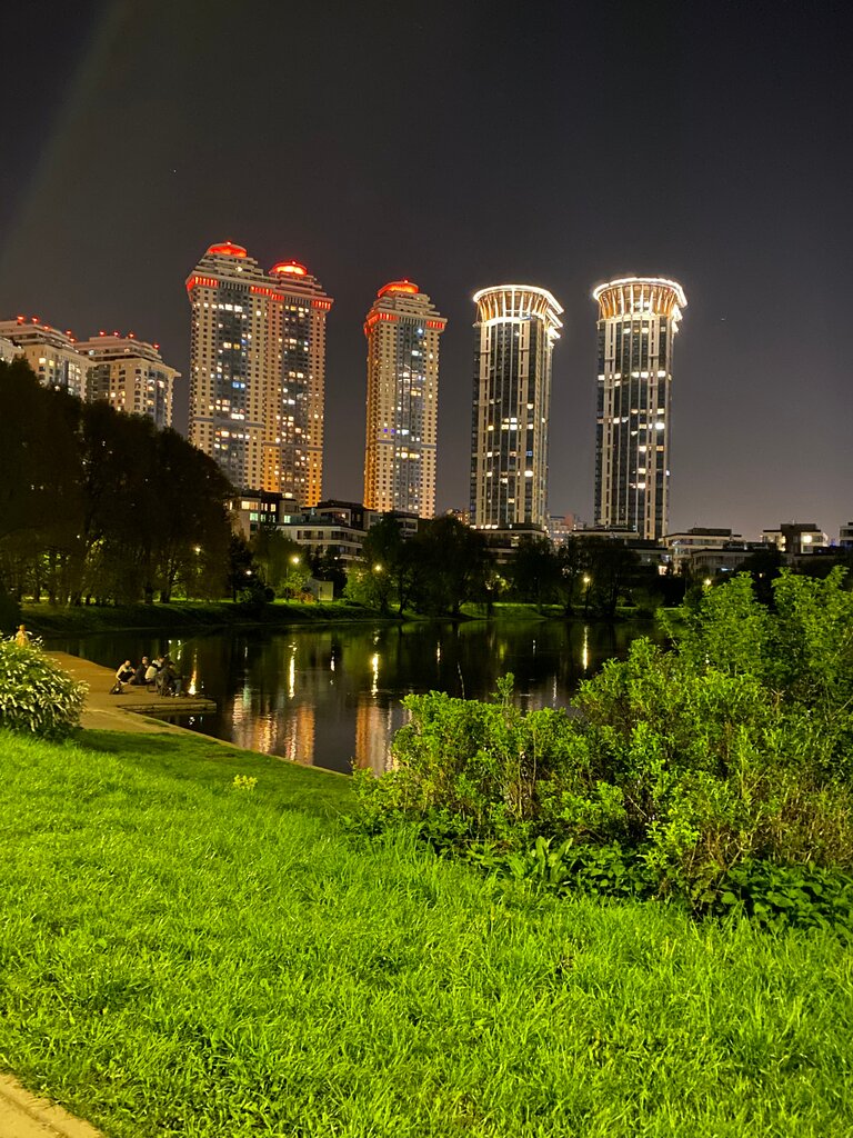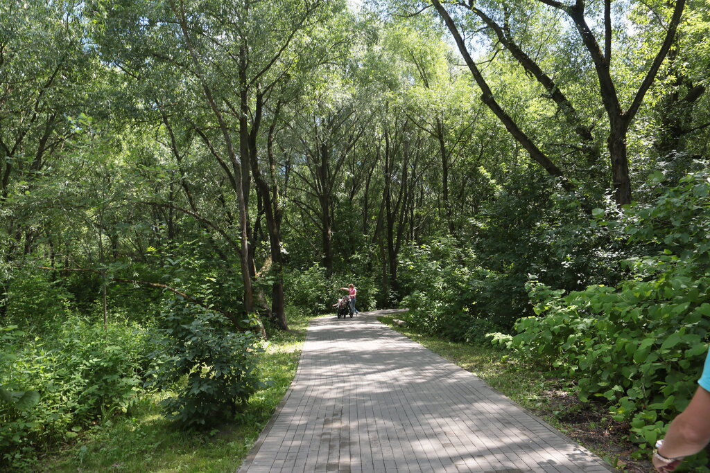 Замечательное место как для самостоятельной прогулки, так и с семьёй. Много лавочек, детская и спортивная площадка, беседки, люди отдыхают, жарят шашлыки, никто никому не мешает. Чисто. Фонари есть, но не везде. Много гуляющих с собаками различных пород, никаких склок, все прилично. С парковкой а/м проблем нет, также рядом расположено метро. Неподалеку ТЦ, можно зайти перекусить после прогулки или же зайти за чаем/кофе.