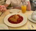 Присоединяюсь к негативным отзывам: часто прохожу мимо и мне просто хочется заказать десерт и выпить чашечку кофе. Но! Почему же так долго несут десерт, который просто нужно взять с витрины и положить на тарелку? Официанты, как ни попаду, все бестолковые и растерянные, и обязательно перепутают пирожные. В итоге, сделал заказ, сидишь ждёшь минут 15-20, выезжает телега (всё супер-бутафорское с этими "Сударыня") с перепутанным заказом :((. Уважаемые администраторы, примите меры, поменяйте уже этот подход! Пусть будет выдача заказа сразу с витрины, минуя кухню. И жалко, что убрали из меню моё любимое пирожное (на фото), название не помню.