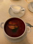 Начиталась критических отзывов о любимом когда-то месте и боялась разочарования, но всё оказалось на уровне: еда, обслуживание, атмосфера – выше всяких похвал! Знаменитый борщ с яблоками, пожарская котлета, зелёный салат – вкуснейшие, свежайшие, бесподобные! И сметана тут всегда была очень вкусная, так и осталась! Заметив, что мы выпили чай, официантка Екатерина предложила добавить кипятка в чайник. В общем, всё, как раньше, но, кажется, десерты стали меньше и уже нет чаши со льдом и бутылками шампанского – время другое) Туалет по-прежнему в Турандот))