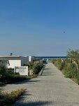 Единственный пляж с привезенным белым песком.с детишками просто идеально. Ездили туда от отеля. Лежаки были бесплатные. Минус в том , что отсутствуют пандусы захода в море. При нас один единственный вытащили и убрали. Когда дует ветер , заход в море становится проблематичным. Медузы присутствуют, тина тоже. Отплыть подальше и чистое. Покушать, попить тоже можно. Есть душь с пресной водой.