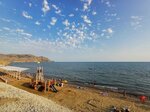 Эх, 7 лет назад был шикарный дикий пляж, с красивыми камешками и чистым морем, приплывали дельфины. А сейчас - это городской пляж, завезли песка, очень много народу, грязное море. Проходит теперь здесь фестиваль Таврида. Из плюсов такого пляжа : бесплатные лежаки, хорошие туалеты, переодевалки, пляжный душ, есть парковка бесплатная и платная, кафе и аренда сапов и тд Рядом есть автокемпинг, строят огромный гостиничный комплекс