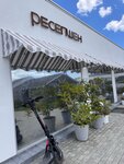 Отдыхали пару дней в начале сентября в этом месте. Понравилось🤍: · Въезд на территорию через шлагбаум. Выдают персональный пульт в личное пользование. · Территория очень ухоженная, продуманная до мелочей. Белый цвет ограждений, фонарей и домиков невероятно гармонично сочетается с окружающей средой. Оливковые и гранатовые деревья, а так же другая растительность(я слаба в названиях😂) создают неповторимую средиземноморскую атмосферу🫒. · Здесь рады гостям с питомцами! Мы были с собакой, другие хвостики были такими же воспитанными и доброжелательными🐶. · Рядом есть несколько точек с кафешками, пробовали только лимонады в Высота 1234. Было очень вкусно и освежающе! Официантки были доброжелательными. Можно с собаками. Есть зоны для прогулок и поездок на велосипедах/самокатах. · Очень здорово, что к каждому питчу подведено электричество. Можно без проблем зарядиться. Единственное, переходник-розетка для зарядки короткий. Либо нужно брать с собой удлинитель, либо ставить рядом стульчик/столик, чтобы положить технику. Но можно положить и на столбик, если это телефон ⚡️. · Достаточное количество душевых кабинок с хорошим напором тёплой/горячей воды. Чистые туалеты. · У пляжа потрясающие виды! Море чистое и тёплое, но заход очень болезненный из-за гальки. В первый заход попался большой камень. После этого стали уходить в левую часть на дикий пляж. Там потрясающий вид на горы, похожие на трюфели. Знакомые с соседнего питча расчистили там дорожку для входа, поэтому заход был комфортным. Было меньше людей и море чище. В один из дней видели там дельфинов. Небольшие пожелания и мечтания: · В душевых не хватало полочек для средств, а некоторые занавески немного поизносились. Не критично, но новая фурнитура сделала бы и без того хороший душ еще комфортнее. · Было бы просто супер, если бы над питчами появились деревянные настилы или легкие навесы. Это стало бы идеальной защитой от палящего солнца и сделало бы пребывание еще комфортнее в самые знойные дни. · Есть специально выделенное место для приготовления еды, так как на питчах ставить мангалы и разводить огонь запрещено. Идея классная, но немного недоработанная. Есть две раковины и один большой мангал(если он занят, то ты ждешь). Нет столика, где можно порезать и приготовить еду, чтобы не бегать обратно на питч. И ещё было бы здорово, если было бы организовано хранения продуктов в холодильнике. Для тех, кто приезжает на автодомах, это неактуально, а вот людям с палатками было бы подходящим вариантом. В целом, нам было очень комфортно. Это место подарило невероятную атмосферу, удобство, знакомства с потрясающими людьми со всех уголков нашей родины. Будем рады вернуться к вам вновь! Желаем процветания и совершенствования!🤍☺️