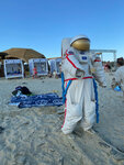 Специально выделили день, чтобы съездить на этот пляж, посмотреть что да как. Не понравилось все, поэтому буду писать о минусах. Первое. Скажу откровенно, с навигацией здесь беда. Никаких указателей и банеров нет. Джиписник барахлит. В очередной раз применили все свои навыки бойскаута и степень 7-ого чувства , чтобы отыскать это место и приехать туда куда надо 😑😅 С ПЕРВОГО РАЗА НЕ ПОЛУЧИЛОСЬ🙄 В чем проблема поставить указатели? Спасибо доблестному охраннику, который не пожалел своего времени и подсказал куда двигаться , чтобы добраться до цели. Терпения ему!)) После нас к нему подходили ещё заплутавшие туристы. Около пляжа большая парковка. Почти все заставлено. В глаза бросается неухоженность объекта. В плане, что вроде идёт ремонт и облагораживание, а вроде и всё кажется каким-то "сухим" и заброшенным. На территории пляжа есть кафешки и магазинчики для отдыхающих, бары, аренда катамаранов, можно взять поплавать доску. На самом пляже белый песок, но не везде. Моё мнение, это бесполезное занятие насыпать здесь белого песочка... шторма в этом районе наверняка смоют все это добро в море. Очень плохой заход в воду - галька, большие камни. Переломать ноги можно на раз два. А нырять в воду - это совершенно глупая затея. Чистота воды очень сомнительна. Как в такую воду отпускать плавать детей - тот ещё вопрос. Отличный способ провести время на курорте в компании белого 🚽 друга дней на 7. Вода мутная , с органикой и другим мусором, и чуточка мёртвых медуз дополняет "композицию" ФУ! Часть территории вокруг поделена и огорожена - частники. На некоторые арт объекты уже не добраться и не посмотреть. Жаль! День отпуска потрачен зря. Единственный плюс - КОСМОНАВТ , с которым можно сфотографироваться. Не рекомендую.