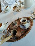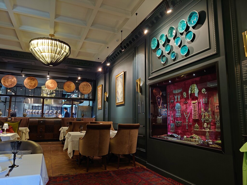 Наверное одно, если не самое лучшее заведение, в которых мне удалось побывать. Интерьер выполнен в темных тонах и сам по себе достаточно прост, но сделано это целенаправленно, чтобы сакцентировать внимание на экспонатах. Они расставлены по всему ресторану, после заказа можно походить, поразглядывать. Еда и подача впечатляют, одно кофе в турке чего стоит, подают с водой, сыром и наливают на месте. Еда вкусная, большой выбор местных блюд и блюд из других кухонь, что не может не радовать. Официанты вежливые, как миниму в нашем случае подробно рассказывал всё про блюда и был очень приветлив. В целом заведение оставило незабываемые впечатления, жаль что на пролитое на спутницу кофе не сделали ни скидки, ни подарка, конечно никто сильно не огорчился, но такое стоит принять во внимание, надеюсь следующий визит обойдется без инцидентов.