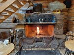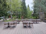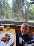 Есть веранда с панорамными окнами, атмосферная обстановка, особенно с майским снегом за окнами, отличные блюда, камин с живым огнем, респект шеф-повару
