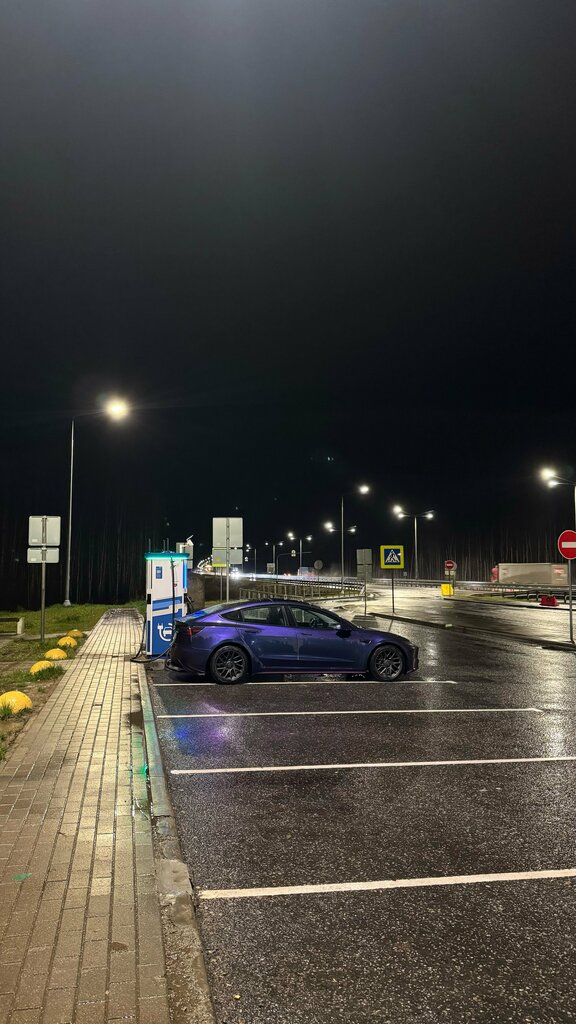 Нормальная зона отдыха, и заправка электрических ТС, парковка довольно вместительная очередь..)) куда без неё....) И магазинчик Автодор, персонал не весьма приветливый.. 👁️👁️📱📱📱👀.. только беседок не рассчитали..