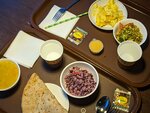 Место видимо для очень "своих". Заходили вдвоём просто поесть карри. Внутри обстановка скорее столовой, а не кафе. Кассир нам пробила некоторые позиции на своё усмотрение, вместо обычного салата овощного пробила салат с авокадо, вместо карри пробила шницель (вот тут уже сложно случайно перепутать). Чек не выдала, забрали сами. Не знаю, насколько принципиальна разница в цене, разбираться уже не стали, но выводы сделали. Еда на вкус столовская, очень простенькая, порции скромные, что-то лучше, что-то хуже. Лепешка была несвежая, резиновая. Карри и салаты нормальные, но ничего особенного. Для такого качества блюд и размера порций на двоих получилось дороговато. Если бы не фокусы с чеком, может ещё бы подумали зайти как-нибудь. Но через час началось расстройство жкт - окончательный аргумент обходить это место стороной.