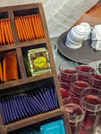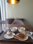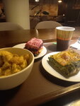 Не осталось ярких впечатлений от посещения. По сути это лучше назвать столовой, где ты выбираешь блюдо из того, что есть на прилавке. Вкус блюд лично мне не понравился, пришлось брать, что было, а меню тут в Яндексе немного шире, чем в действительности. От выпечки отказалась, так как она стоит открытой на витрине без защитного стекла и все посетители делают заказ/разговаривают рядом с ней, что не очень гигиенично, на мой взгляд.