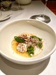 Чтобы понять этот ресторан и оценить, за что он получил в свое время звезду Мишлен, закажите сет от шефа, мы попробовали Selfie Signature. Во первых, это оочень вкусно, а во вторых, вы получите еду и историю, и история создания блюд рассказывается реально увлекательно. А если вам будет рассказывать Василий, вообще заслушаетесь☺️. Можно заказать и сопровождение из вина. Так все отлично гармонирует, но как по мне немецкое вино и Лефкадия в сете спорное решение. Из нашего сета лично мои фавориты это сахалинский гребешок, в соусе чувствовался мед, очень приятное сочетание. Далее колдуны с боровиками, это вообще огонь, тут надо просто ложкой зачерпнуть и все вкусы вместе прочувствовать. В сетах размер порции «на попробовать», так бы я съела этих колдунов раза в три больше 😆 Ну и фаворит это десерт белые грибы и черные лисички, и это мороженое! Если смотрели фильм Шеф с Жаном Рено, там есть фраза «как умудрились утку засунуть в желейный кубик?!» ну вот тут также - как умудрились засунуть грибы в мороженое и сделать это так вкусно! Вобщем это место точно рекомендасьон, но идите не на час, закладывайте много времени, будет вкусно;)