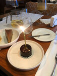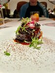 Недавно посетили с мужем ресторан второй раз в честь нашей годовщины. К сожалению, кухня не произвела впечатления как в наш прошлый визит два года назад. Хороший сервис, персонал внимательный, администратор учла мои пожелания по расположению столика, что было приятно. Спокойный уютный интерьер, столики расположены на комфортном расстоянии друг от друга, музыка тихая, ненавязчивая. По кухне: заказали несколько блюд из закусок, несколько горячих блюд, вино, коктейли. Понравилась хурма со страчателлой и из горячих закусок колдуны с боровиками. А вот стейк рибай оказался очень жирным, профитролли с грибами слишком холодные - температура ниже комнатной, ни мне ни мужу блюдо не понравилось. Сомелье не смог подобрать нам вино по вкусу, попробовали несколько видов белого вино ни одно не понравилось. Из приятных моментов вкусный свежий хлеб с воздушным маслом, мини тарталетки. Также официант поздравил нас сладким десертом в честь годовщины - было приятно.