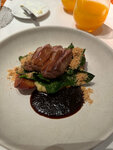 Отличное место с классной локацией! Интерьер довольно простой, без особых изысков, но атмосфера приятная. Поначалу нас посадили рядом с очень шумной компанией, что немного испортило впечатление, но по нашей просьбе официанты без проблем пересадили нас к окну — хотя эти места обычно бронируются с депозитом, за что отдельное спасибо! Безупречное обслуживание: официанты профессиональны, менеджер следил за комфортом гостей и в конце переспросил про наши впечатления. Еда вкусная, блюда хорошо сочетаются между собой. Правда, закуска с фуа-грой оказалась неожиданной: вкус самой фуа-гры практически не чувствовался из-за виноградных листьев. Но яблочный пирог и соус был сумасшедший. В целом — отличный ресторан для того, чтобы провести здесь вечер.