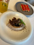 Приятное место со сложной кухней, хорошо обученным персоналом и отличным интерьером. Были там дважды, оба раза брали сеты. Еда интересная, сеты - очень небанальные (имхо), подача - красивая. В целом, все хорошо. Кроме того, что оба раза в сетах мне попадалась кость - в первый визит она была в мясе (как?), второй раз - в рыбе (см фото на ноже). В целом, рыбу и мясо в ресторанах я ем почти всегда, а вот кости мне там попадаются далеко не всегда. Но все равно, все остальное - очень хорошее, так что наверняка придем сюда еще.