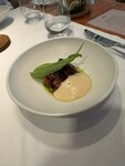 Побывала в этом ресторане трижды, и каждый визит оставил свои впечатления. Самыми яркими моментами стали, безусловно, панна-кота из щавеля — её потрясающая гармония вкусов и текстур точно заслуживает внимания. Также запомнились цветы с цукини. Пирог из ревеня не рекомендую-плоский вкус. Дома готовлю поточнее просто у рецепту-вкус получается намного глубже (замените тесто на песочное и добавьте хруста ревеню). Мы пробовали много других блюд, и здесь на вкус — как в любой хорошей гастрономии: одни блюда — прям «вау», другими — стоит насладиться единожды. Всё на ваш личный вкус!) Общее впечатление от ресторана — отличное. Это уютное, спокойное место, с пока ещё не слишком кусающимися ценами, которое предоставляет настоящий гастрономический комфорт. Приятное обслуживание, панорамные окна и еда, которая действительно заставляет вернуться. Парковка рядом — огромный плюс. Интерьер красивый и продуманный, кресла удобные, а пространство не перегружено. Подача минималистичного изысканного комплимента тоже приятно удивила — точно в духе этого места. А к тому же на праздник (хоть и не на день рождения) нас угостили десертом — такой жест внимания оказался очень приятным.