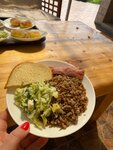 Прекрасное место, чтобы отдохнуть душой и телом! Ездили компанией друзей, снимали домик Деревянный шале и ничуть не пожалели. Шашлыки на природе, чистейший воздух и просто уютная атмосфера - это то, к чему мы стремились и что получит каждый, кто желает отдохнуть от шумного города) В домике было очень тепло, мягкие матрасы, одеяла и подушки) В прохладные вечера, если есть желание посидеть на улице, предоставляются тёплые пледики) На самой территории очень комфортно, есть качели, различные беседки для отдыха и созерцания гор, которые возвышаются там со всех сторон) В основном ели в кафе, но и тамошняя кухня тоже очень вкусная😌 Равносильна домашней) Один омлет на завтрак чего стоил😋 Сразу скажу - это не пятизвёздочный отель. Это место для простых людей, которые в случае чего, спокойно могут попросить что-либо принести, если нужного не окажется в домики(а там почти есть всё) или попросить прибраться по необходимости. Как по мне, всю злобу, пафос и возмущения лучше оставлять перед входом в это уютное место. И только тогда вы сможите насладиться гостеприимством и как следует отдохнуть)) На территории бегают утки, частенько крякают и устраивают дебаты, но ночью практически умолкают и совсем не мешают)) Большая благодарность администратору Ирине. И завтраки приносила и обед очень вкусный нам троим готовила. Всегда учтиво относилась и была очень гостеприимна🤗😌 Обязательно сюда ещё вернёмся, чтобы насладиться другими возможностями! Из предоставленных удалось выехать в пещерный город Мангуп-Кале с экскурсией. Нам очень понравилось. Со знанием было всё рассказано и показано) Дорога туда конечно экстремальная, но оно того стоило. Адреналина на месяц вперёд)))) Конные прогулки так же очень комфортные. Вежливый инструктор и спокойные лошади) Забирали нас прямо с базы. Виды природы - закачаешься! Развиваться есть куда и надеюсь, стоять на месте ничего не будет. Придираться даже не имеет смысла, ибо настолько всё понравилось, что остальное максимальные мелочи. Очень замечательное место!!Рекомендую!! 🥰