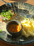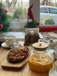 Кафе расположено вдали от активного транспортного движения. Встречают и обслуживают с уважением, как будто только нас и ждали. Столы расположены на достаточном расстоянии друг от друга, чтобы не слышать о чём говорят другие посетители, а это для меня большой плюс. Зашли в 11.30, было свободно, основные блюда принесли в 12.00. Заказанные блюда внешне полностью совпадали с фото в меню. Было очень вкусно и фото салатов сделала не сразу, спохватилась, когда половина была уже съедена. На "Жарком по домашнему" я уже ответственно) сделала видео дымящейся и булькающей еды на принесенной сковороде. Муж ел "Ростбиф с томленными овощами", доволен, "необычная говядина с кисло-сладким привкусом, достойно", - цитата. Были планы заказать хачапури (уж очень аппетитно выглядят в меню), но решили отложить до следующего визита. Рекомендую.