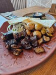 Возвращаясь с экскурсии, будучи замерзшими и голодными, зашли уже минут за 40 до закрытия. Нам не отказали в шашлыке, разогрели мангал. Как же давно я не кушала такой обалденный шашлык из баранины, мягкий и сочный, салаты тоже вкусные, порции хорошие) очень понравилось!