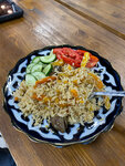 Самый вкусный плов! Порция большая, помидорчик и огурчик 🤌