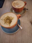 подошли к кассе, нас отправили за столик и очень долго не могли обслужить, стаканы с кофе трогали за края, учитывая чтт люди касаются их ртом,напитки слишком сладкие, тирамису и медовик со странными послевкусиями